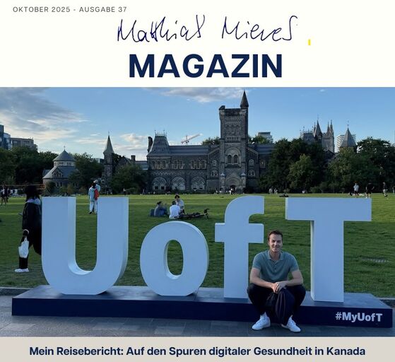 ich war in Kanada. Nicht um Urlaub zu machen. Sondern um das Gesundheitssystem Kanada besser zu verstehen. Mehr dazu in der neuesten Ausgabe des MM-Magazins. Außerdem gibt es tolle Neuigkeiten für unsere Heimat. Für die herbstliche Jahreszeit habe ich außerdem einen persönlichen Lese-Tipp für euch.